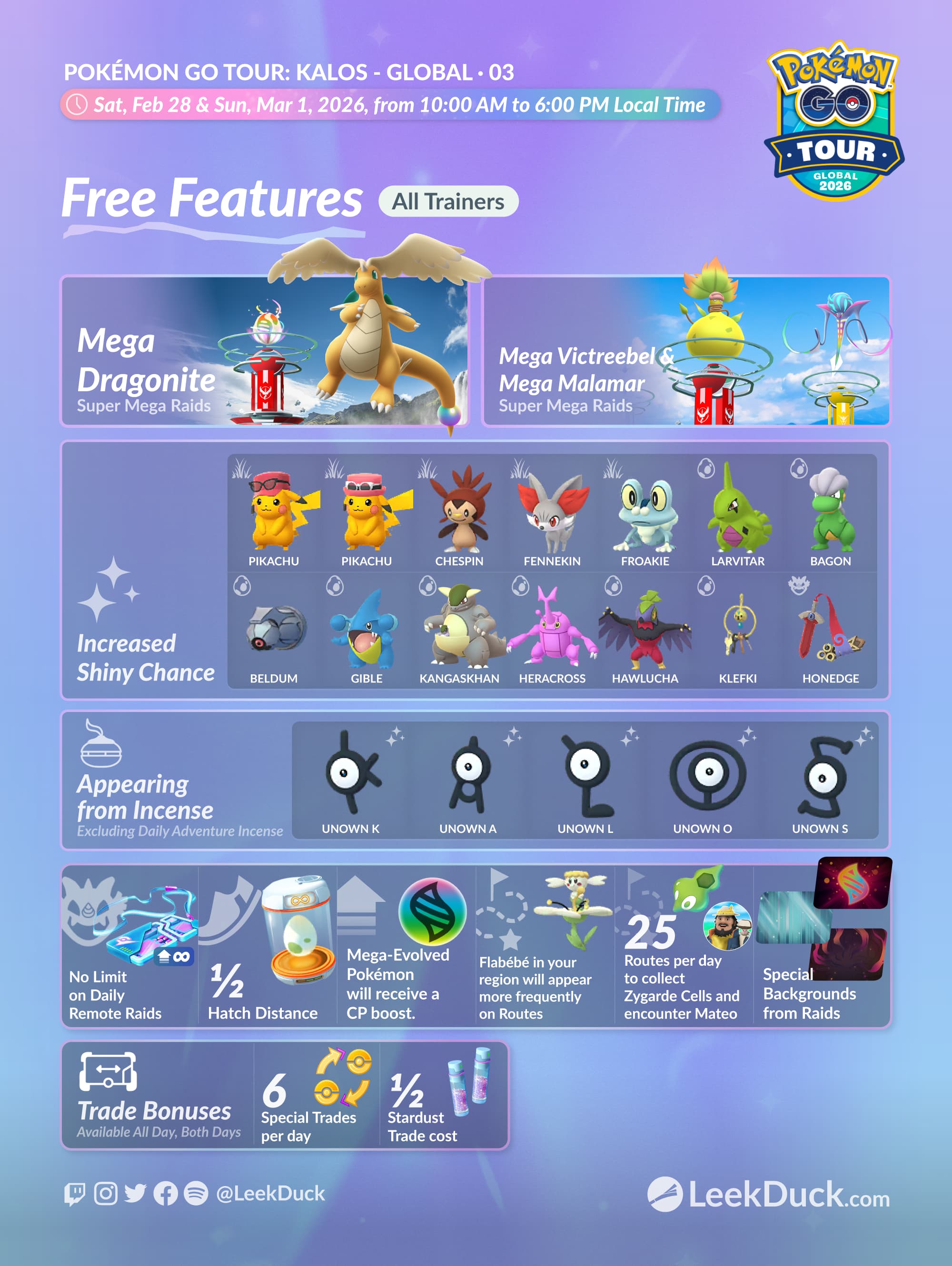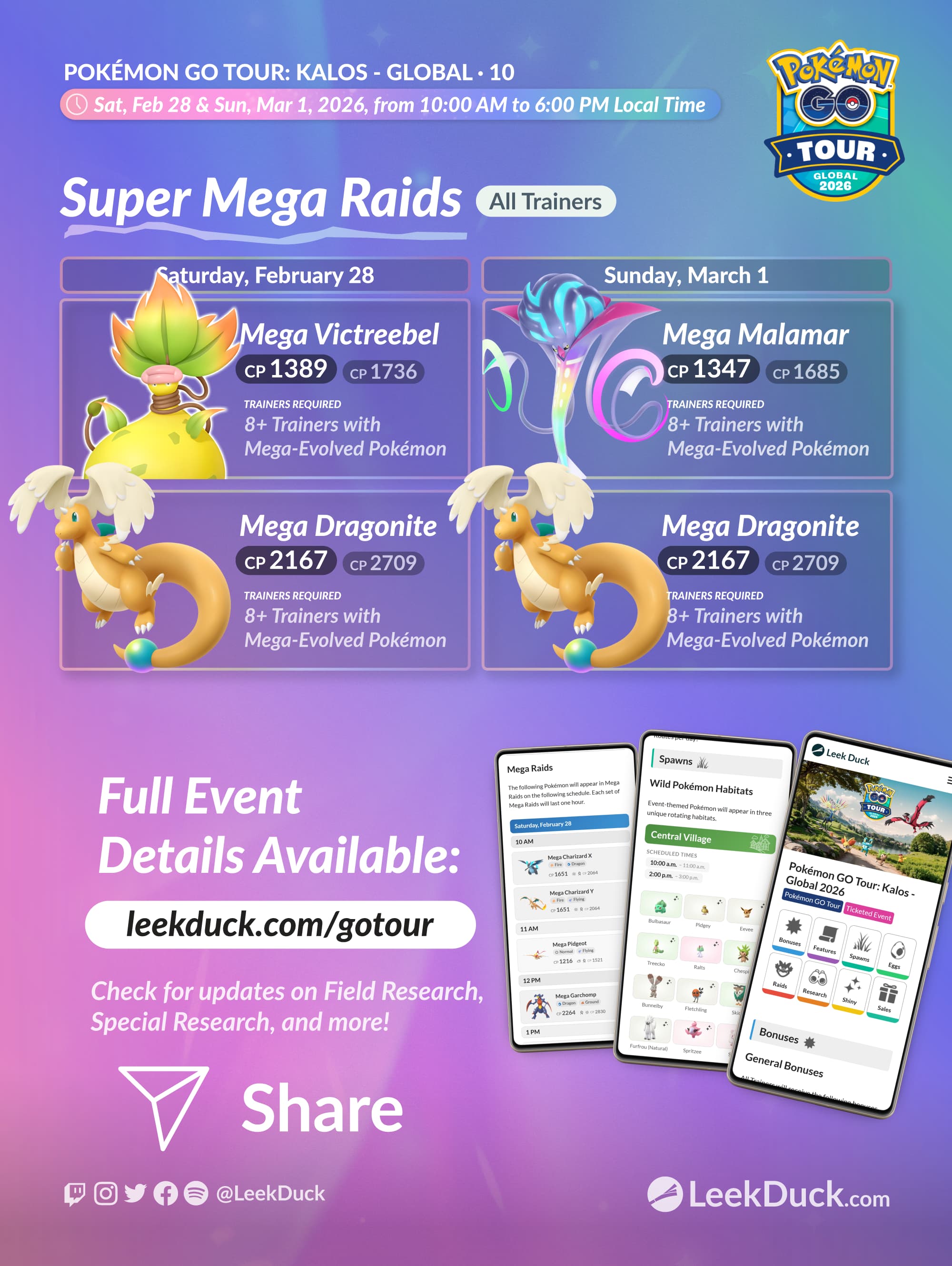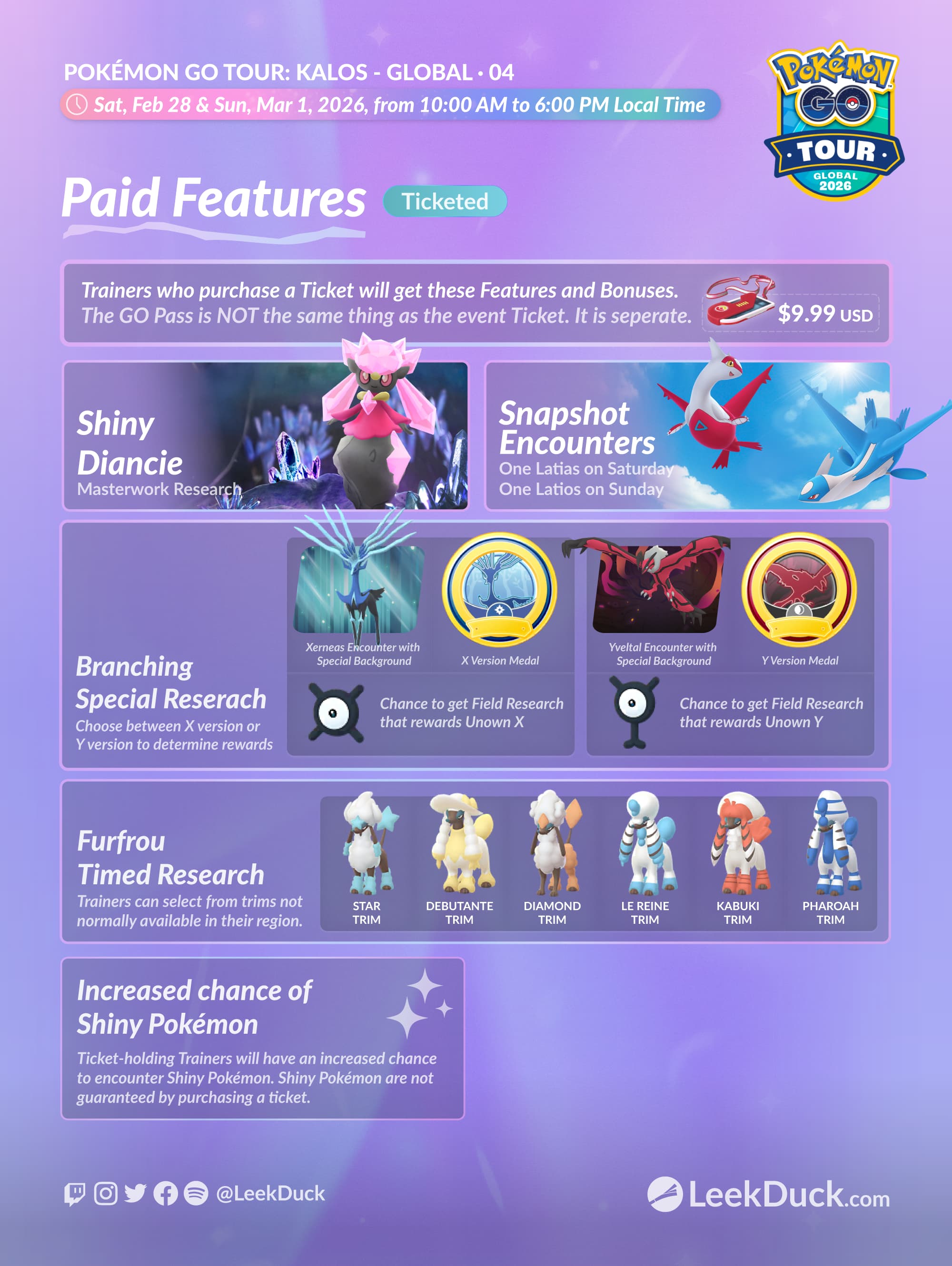 Check for updates on Field Research, Special Research, and more on the GO Tour: Kalos event page! https://leekduck.com/gotour/